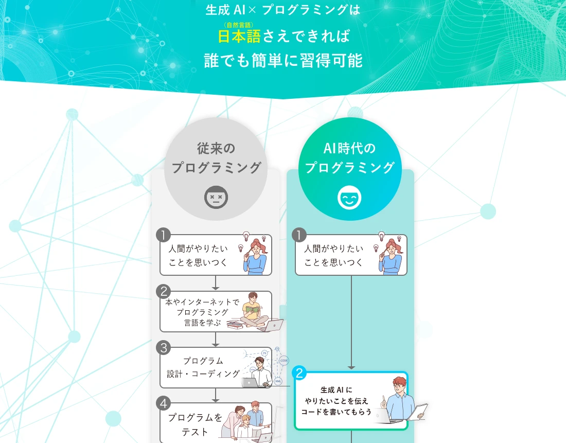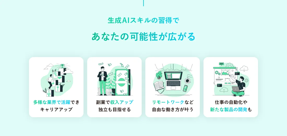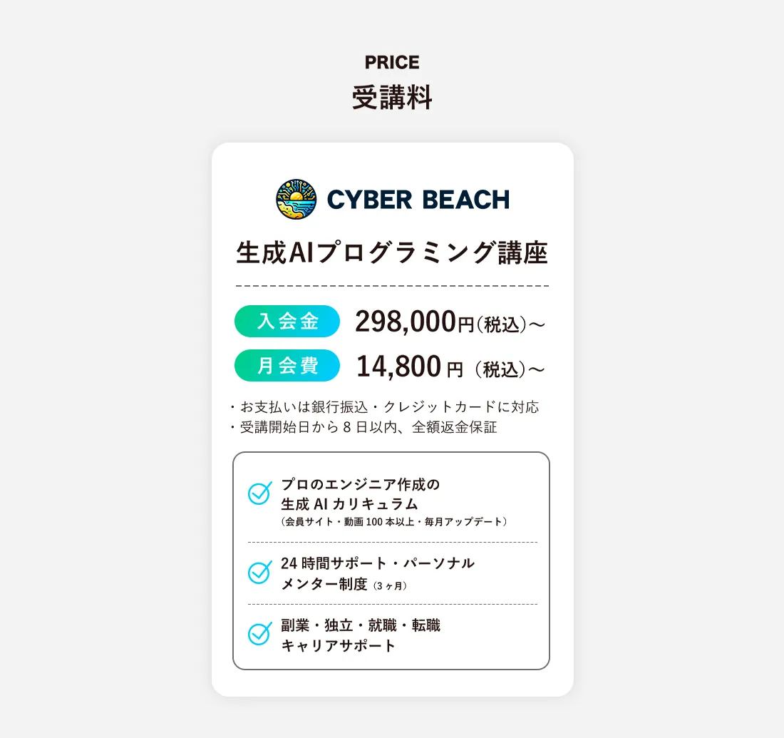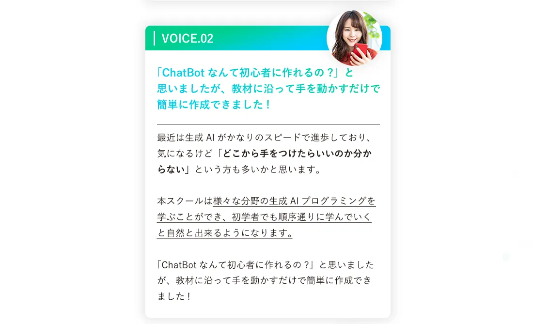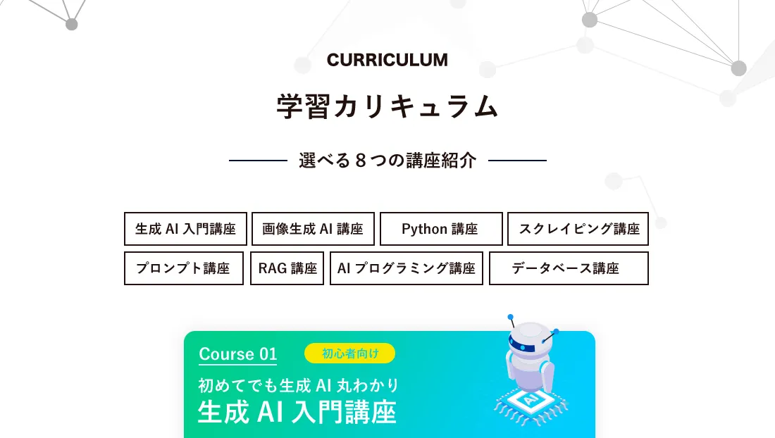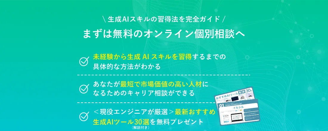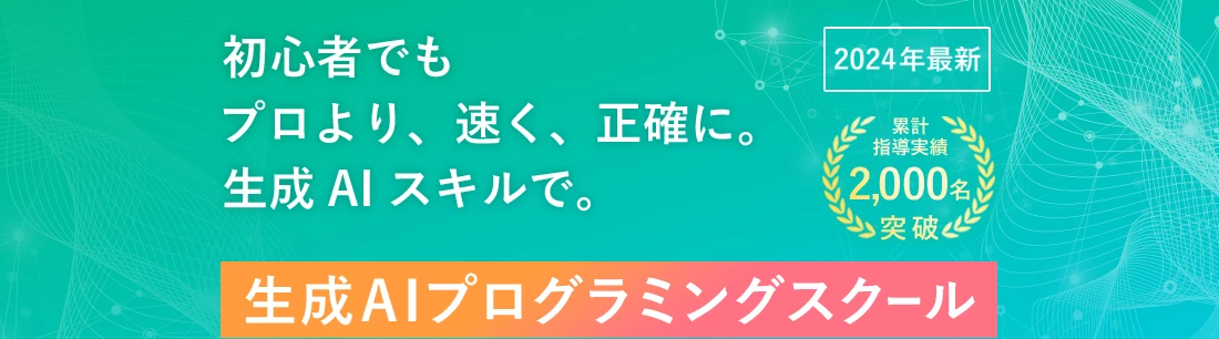 そのためこういった点にご不安な方は生成AIプログラミングスクールの受講をおすすめしております。