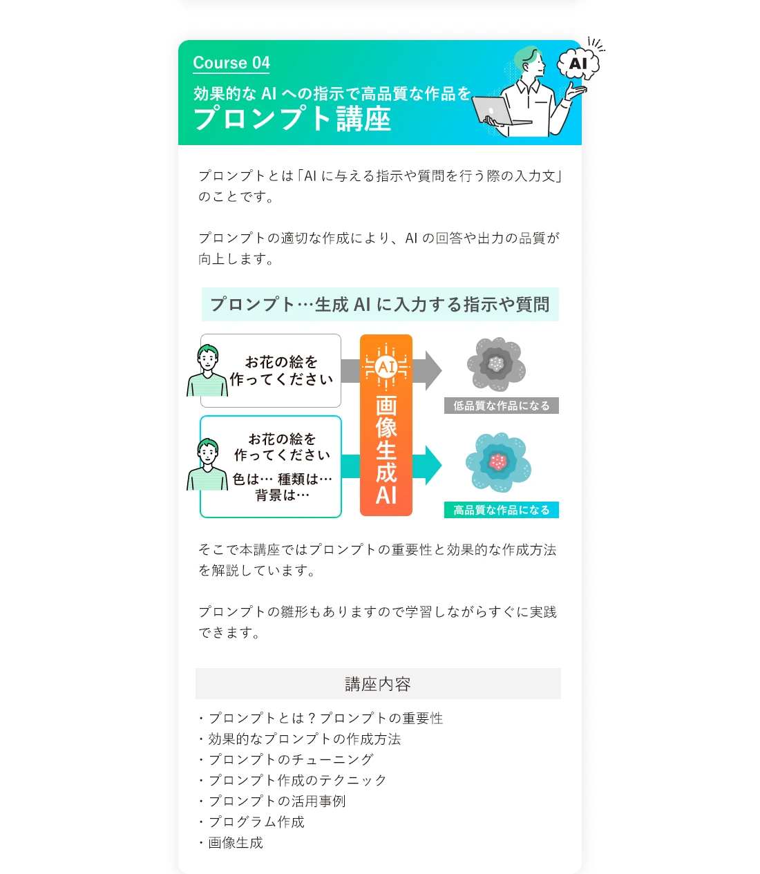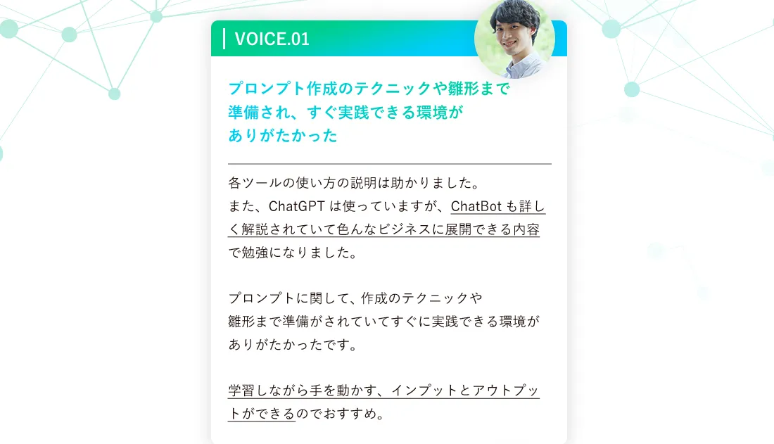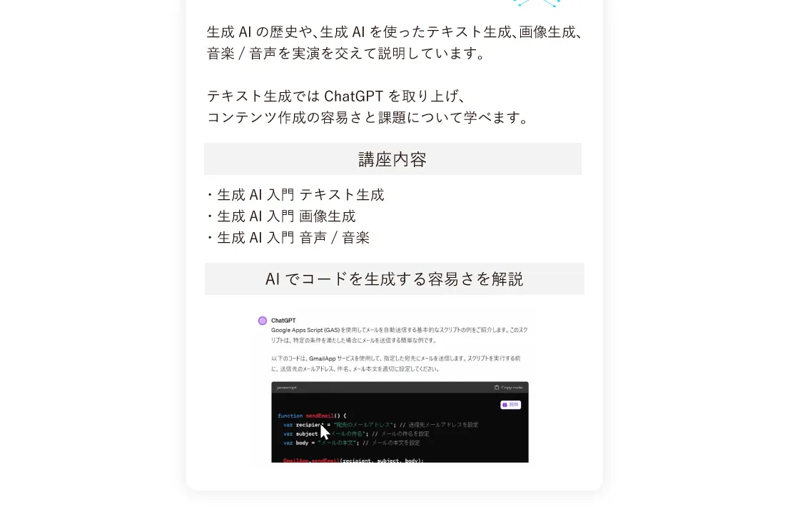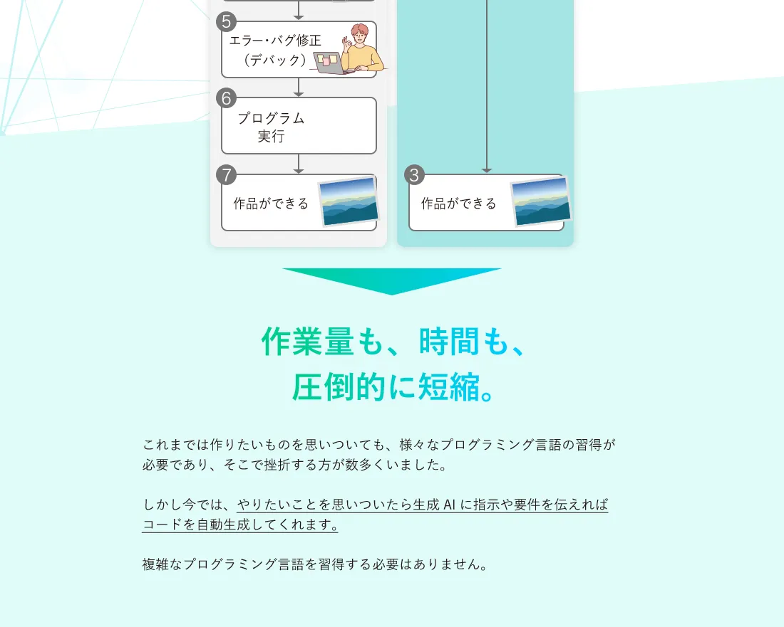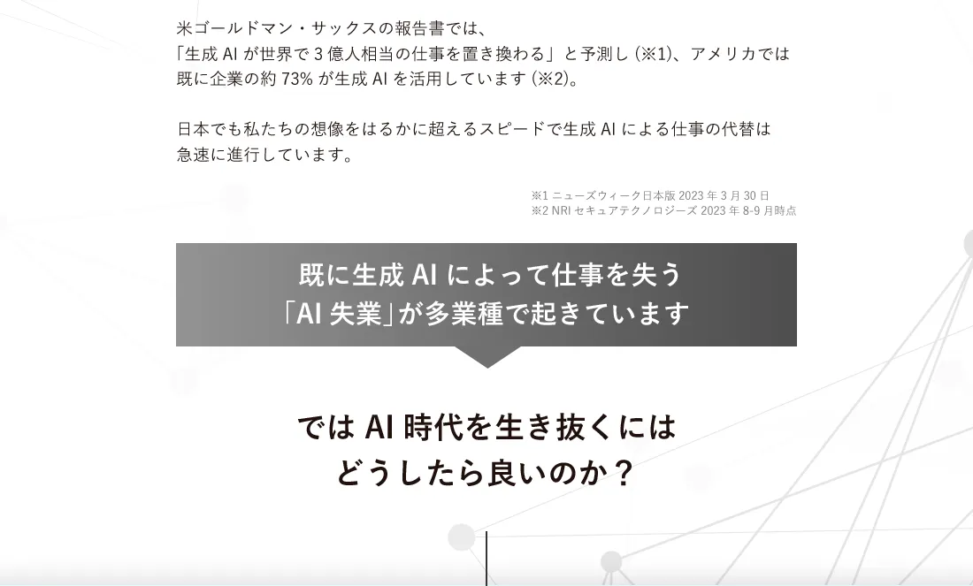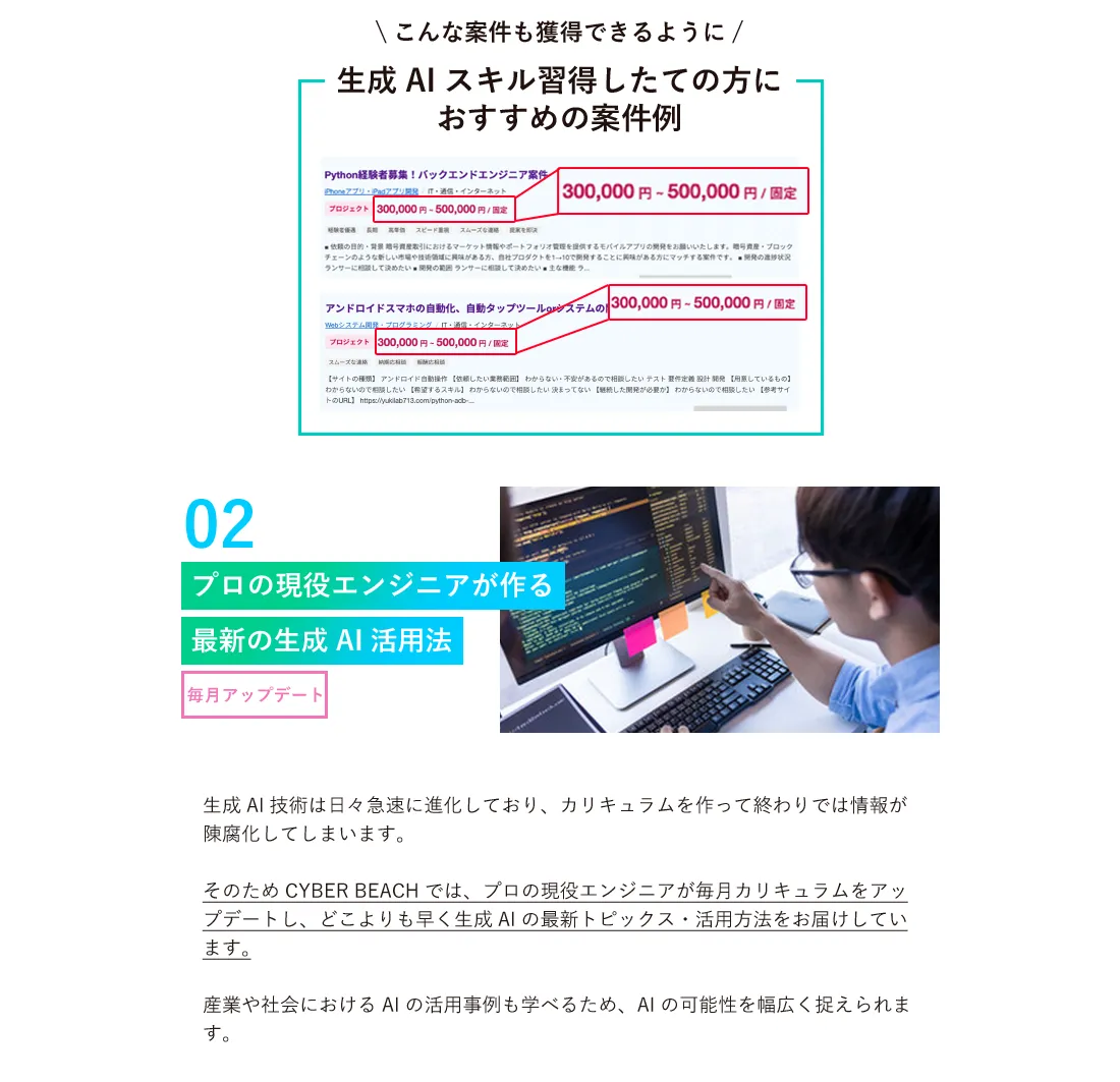 そのためこういった点にご不安な方は生成AIプログラミングスクールの受講をおすすめしております。